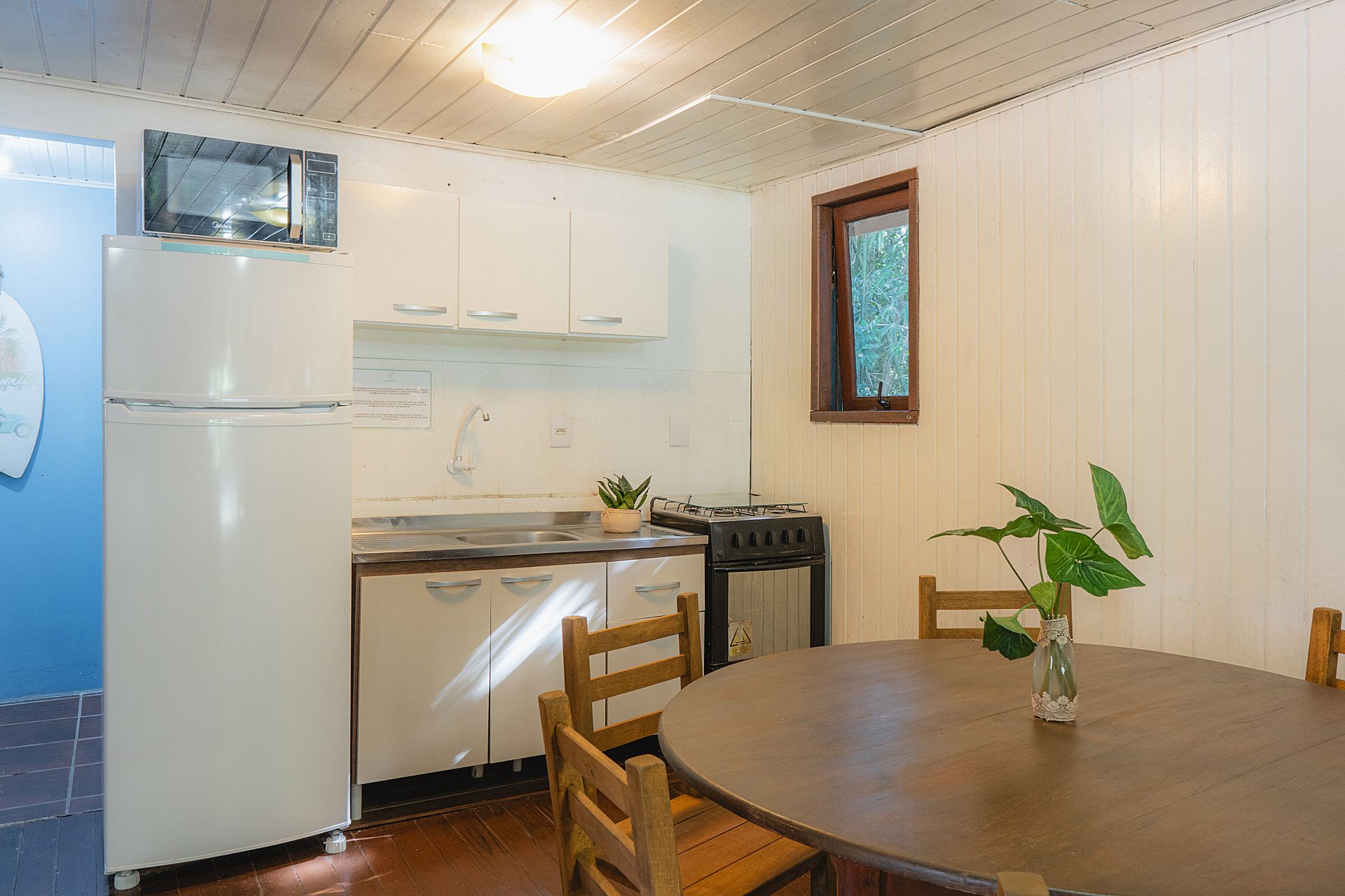 - Microondas, geladeira com freezer e fogão com forno